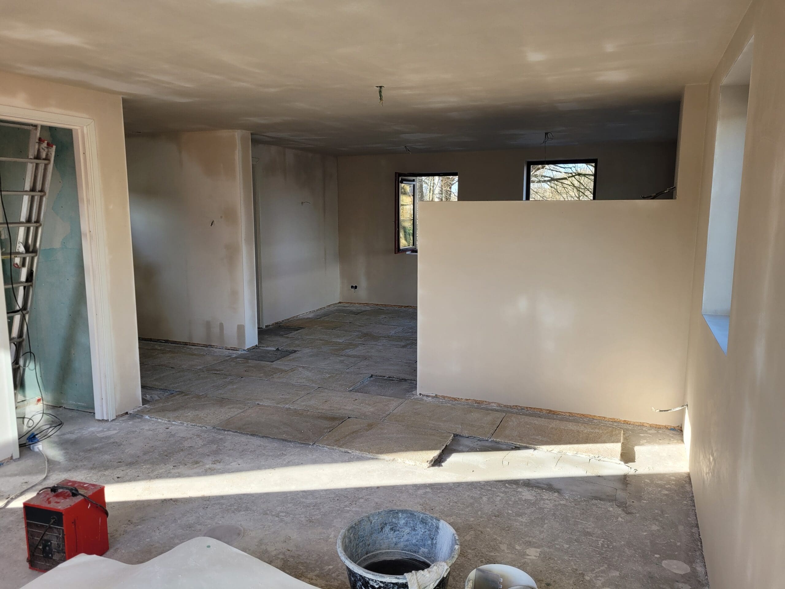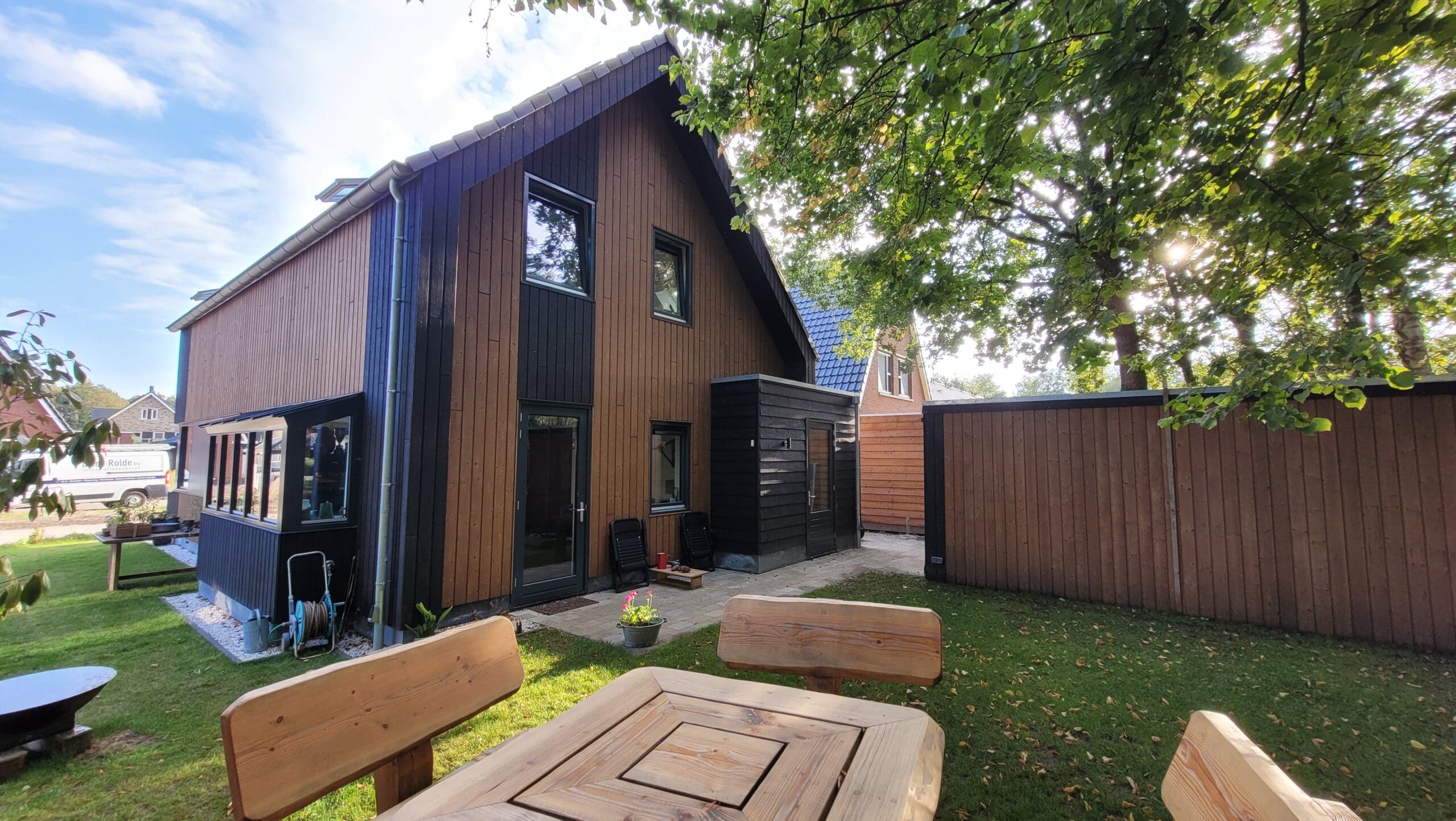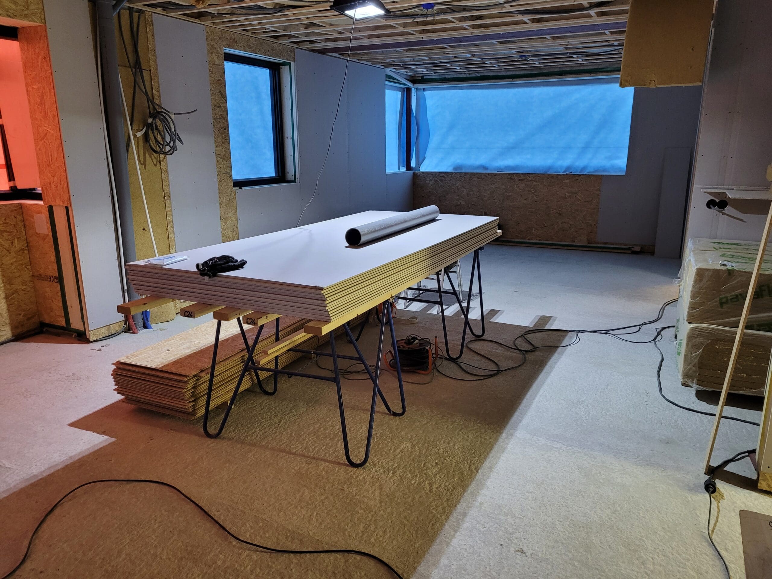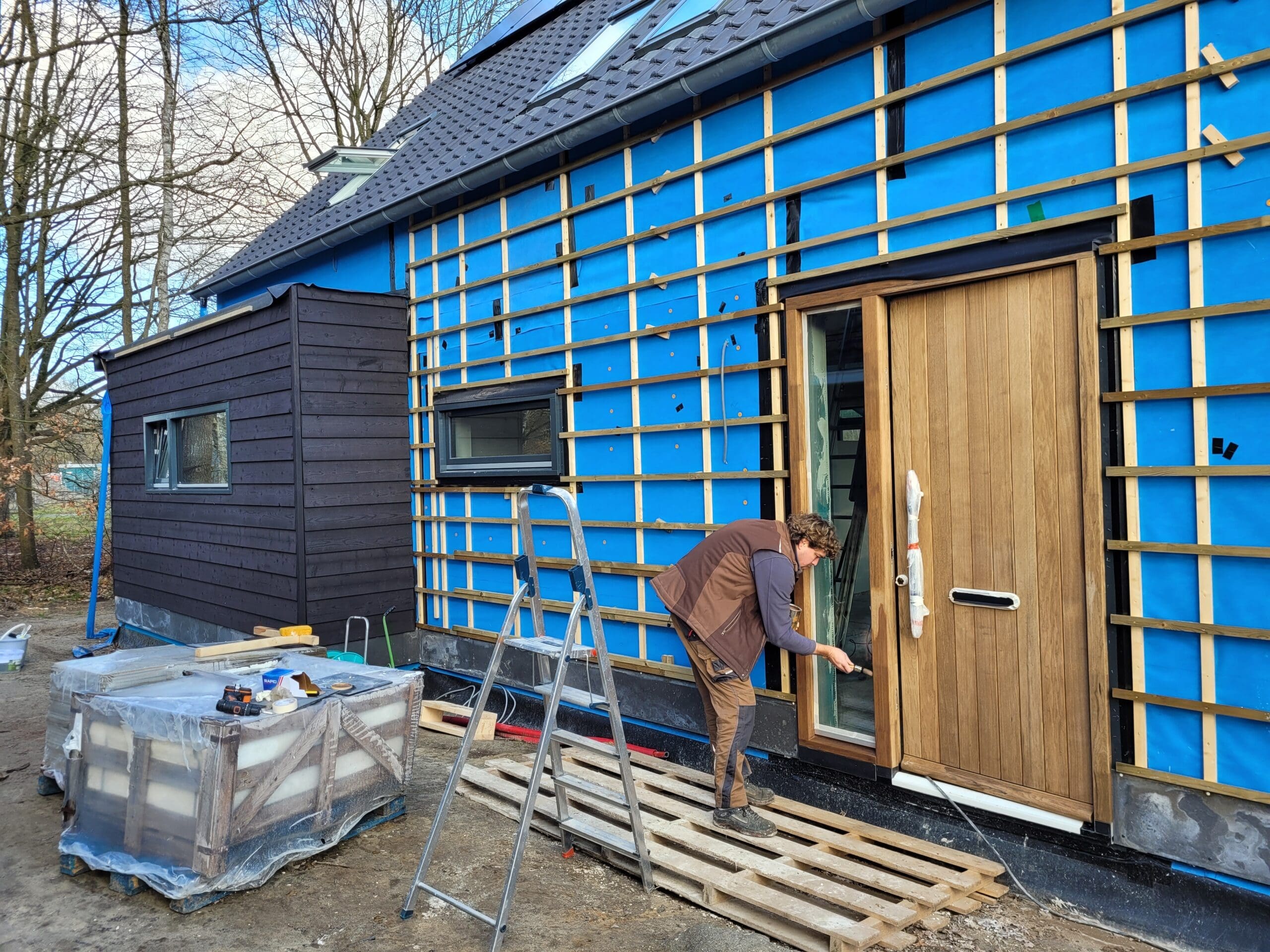 Het team ruimt steeds het afval op, een nette werkplaats en ze zijn fantastisch op elkaar ingespeeld. Wat hebben we hier van genoten!  Gewoon een hele fijne club mensen bij elkaar die aan alle kanten weten wat ze doen. Toen het huis (casco) stond, begon het voor ons - en hebben we flink de handen uit de mouwen gestoken.  We hebben zelf de afbouw van de woning gedaan. Hier en daar met behulp van een specialist en timmerman (alleen al om de professionele apparatuur een aanrader!), een mooie samenwerking.
